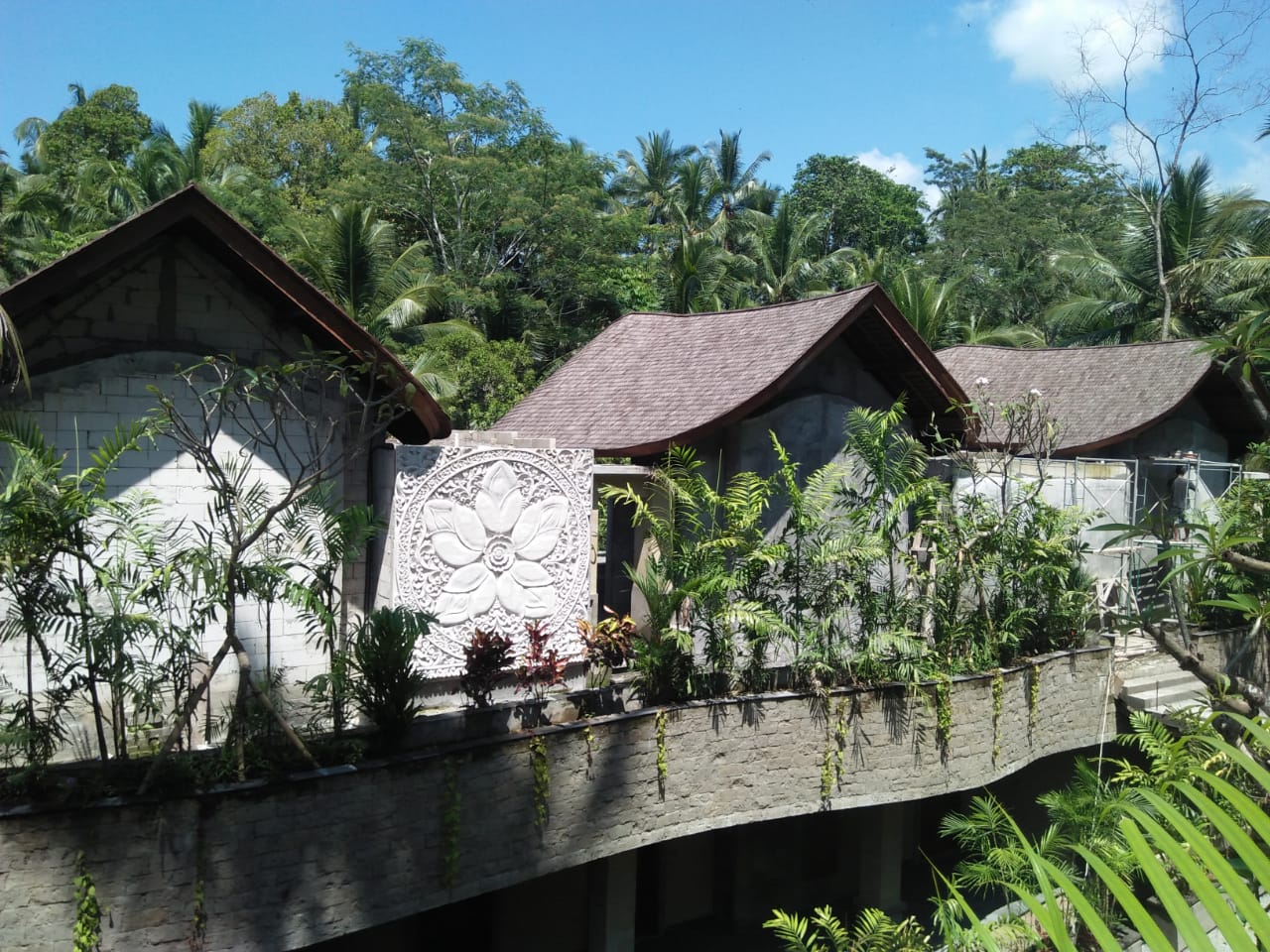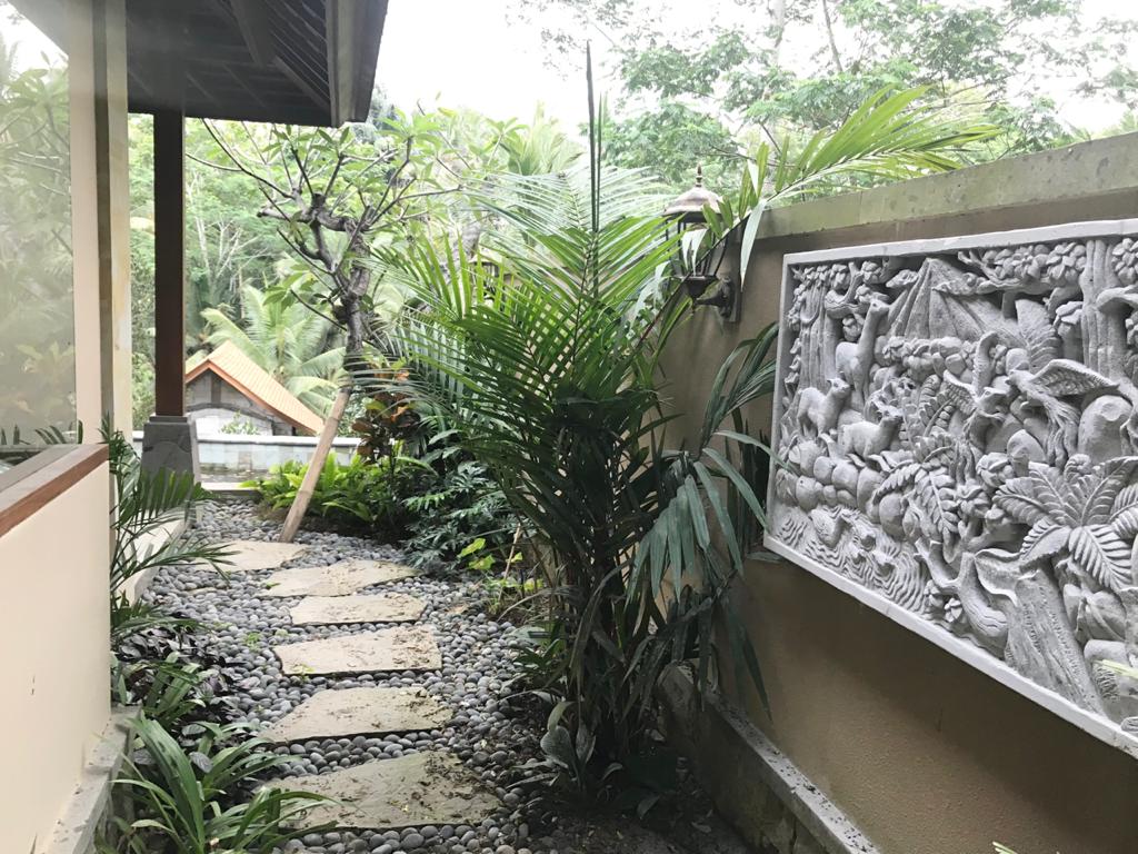 Abisena Ubud Resort reflects the character of Ubud as a healing place for people seeking tranquility and authentic Balinese heritage. The interiors are inspired by Ubud’s landscapes, its gardens and rice fields. The visual signature of this resort is the Plumeria flower, also known as the Frangipani. The Balinese people use this lovely, fragrant flower for prayers, offerings, and as hair ornaments for temple dancers. We have incorporated the Plumeria into the interior design in a number of innovative ways. In the lobby, which opens to a grand forested vista, there is a large copper artwork, a feature wall in the reception area, and a chandelier, all featuring the Plumeria. The ceiling combines rattan with carved frame. The ambiance is enriched with the pattern of handwoven songket textile in the upholstery.